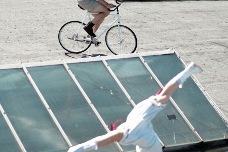 Een fietsverkoper op zoek naar een publiek rolt het podium op. Ze is perfect voorbereid: de foldertjes geplastificeerd, glimlach geoefend, bel gepoetst en verkooptekst ingestudeerd. Met zo een groot publiek moet ze vandaag toch zeker haar fiets verkocht krijgen?